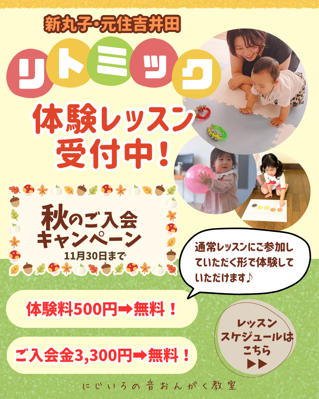 中原区新丸子・元住吉井田の0歳からのリトミック教室 秋のキャンペーン中です!